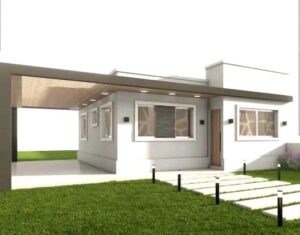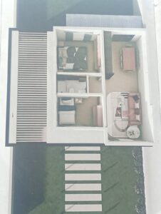 Cocina- living- comedor, 2 dormitorios, baño y cochera. 61,3 m2 cubiertos y 35,8 m2 semi cubiertos.