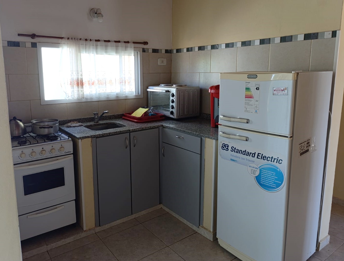 Totalmente equipados: cocina, heladera, mesada, mesas, sillas, camas, aire acondicionado, ropero, televisor. Baño completo.